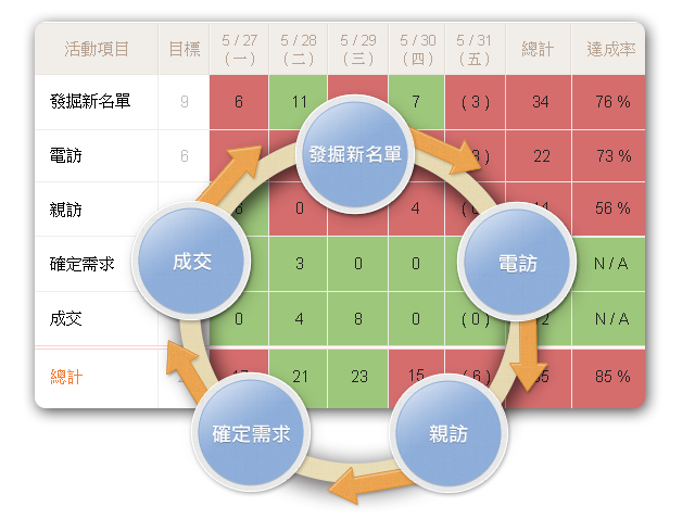 依照交易的數量以及任何期間內所有交易在階段間的轉換情形,透過圖形化報表讓您精準掌控專案進度與客戶動向,讓業績達成更有效率